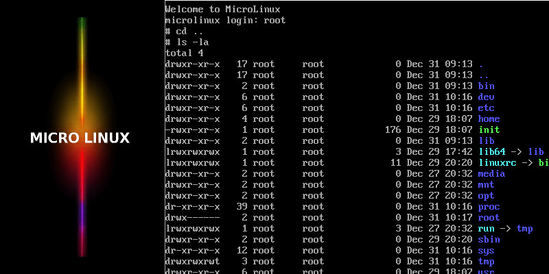MicroLinux - Das nur 8MB kleine Betriebsystem![]() Was ist MicroLinuxMicroLinux ist ein nur 8MB kleines Computer Betriebsystem welches mittels BuildRoot erstellt wurde. Zu den Vorteilen von MicroLinux gehört es, dass es vollständig aus Quellcode kompiliert wurde und somit auch sehr einfach auf andere Plattformen wie ARM, RISC oder spezielle embedded Systeme portierbar ist. Dank der kompakten Grösse des selbst erstellten und kompilierten MicroLinux ist es möglich diese Betriebsystem-Plattform später als Ausgangsbasis für weitere hochkomplexe Betriebsysteme mit graphischer Oberfläche und besserer Hardwareerkennung zu nutzen. Kernel und Rootfs InfoDamit das Betriebsystem etwas für das Auge auf Systemen mit Bildschirme bietet wurde der Kernel mit der Framebuffer Konsole kompiliert welche es ermöglich bunte Graphiken wie der Boot Splash Screen in der Konsole darzustellen. Ohne dieses zusäzliches Feature wäre der Kernel 30% kleiner und somit nur 2.8 MB gross. Das Rootfs besteht haupsächlich aus dem weitverbreitetem Busybox ("Schweizer Taschenmesser für Linux Systeme") Konsolenprogramm. Es bietet alle gängige Linux Kommando Zeilen Befehle um Bash Skripte usw. auszuführen um damit das System wie jedes andere auch verwalten zu können. Die richtigen Einstellungen bei der Kernel und Rootfs Konfiguration vor der Komilierung zu finden ist komplex und Zeitaufändig. Bis man das entsprechende richtige Setup um ein funktionierendes und Bootbares System zu erstellen findet vergeht sehr schnell viel Zeit. Download und Test BootenDerzeit ist das MicroLinux Betriebsystem in der neuesten Version als Image zum Download hier verfügbar. MicroLinux Direct Download Um es schnell und einfach ohne viel Aufwand austesten zu können wird es empfohlen mittels einer Virtuellenmaschine wie zum Beispiel Qemu aus Windows, Apple oder Linux direkt zu booten ohne änderungen am bestehendem System durchzuführen. Eine Installation der Virtuellen Maschine Qemu sofern noch nicht vorhanden lässt sich in Linux einfach mit "sudo apt-get install qemu" durchführen. Für Windows und Apple gibt es ebenfalls einfache ein Klick installer um die starke und Lesitungsfähige QEMU Virutelle Maschine zum Laufen zu bringen. Die Qemu Boot Optionen um MicroLinux in der Virtuellenmaschine zu starten sind ''' '''