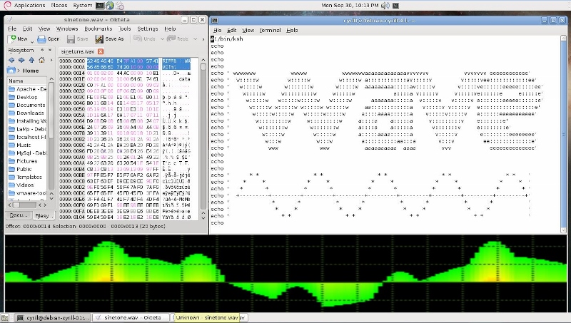 Sinus-Testsignale![]() Im Rahmen des Röhrenverstärkerprojektes soll die Funktionsweise der Schaltung dokumentiert werden. Dazu soll ein asymmetrisches Testsignal mittels Oszilloskop über die verschiedenen Bauteile hinweg mitverfolgt werden. Insbesondere die Funktionsweise der Phasenumkehrstufe soll durch die Asymmetrie des Testsignal speziell hervorgehoben werden. Die Generierung des Testsignals soll als kostengünstige Lösung durch die Soundkarte eines handelsüblichen Rechners erfolgen. Dazu wurde ein Unix Korn-Shell Skript geschrieben das drei konfigurierbaren Sinuskurven zu einem einzigen Testsignal addiert und das Testsignal in Microsoft WAVE-Datei von 1 Minute Dauer abspeichert. Korn-Shell-Skript zum Generieren von Testsignalen (Achtung: setzt Befehle ein die nur in der Korn-Shell funktionieren): |